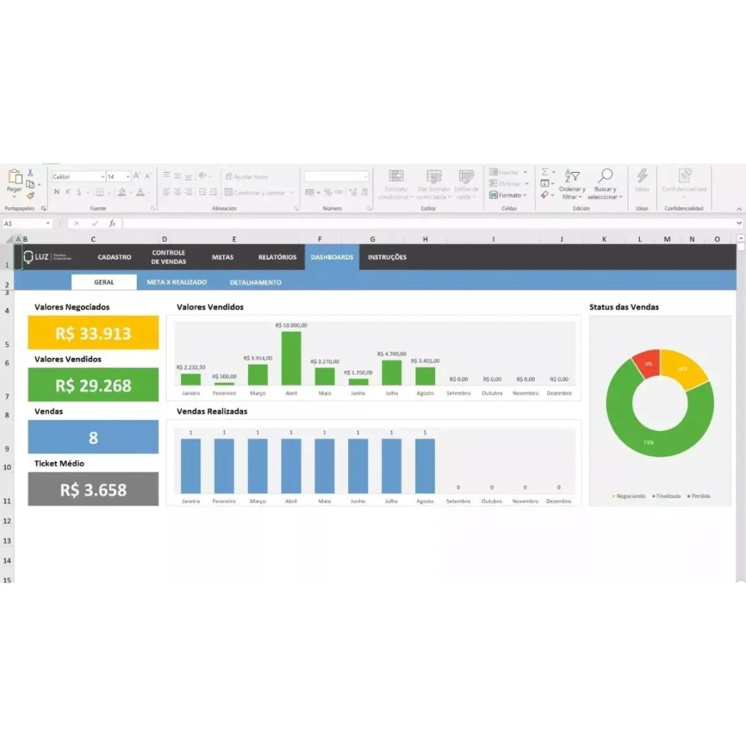 ✅ Controle de Vendas: Registre cada venda com todos os detalhes: produtos vendidos, clientes, valores e status da negociação. Todos os dados serão processados automaticamente para gerar relatórios e painéis de controle. 📈