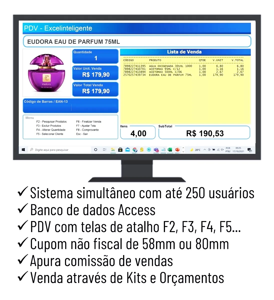 F2,F3,F4), venda através de kits e orçamentos, e emita cupom não fiscal (58mm ou 80mm) ou recibo. -